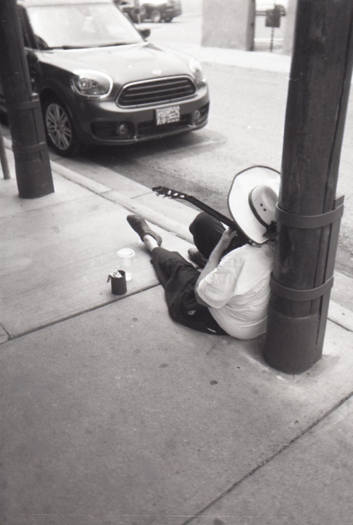 I like the small size and portability of it. Plus I can load a roll of 24 exposure film, usually black and white, pack another spare roll and then hit the road. It’s such a small camera that I can wear it on a lanyard and not worry about a backache.