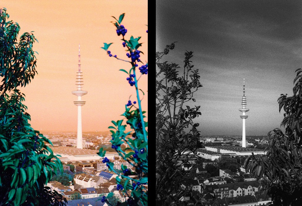 Humans have a horizontal field of vision but stand upright in the world. The half-frame or portrait format leads us to a clear composition of vertical stratification, which also fits wonderfully into the digital display on our mobile devices. It offers comparison, sequencing and side-by-side presentation. Of course, if the subject requires it, I also turn the camera, but primarily it is the vertical, the portrait, that appeals to me. When you look through the round viewfinder of the Penti II for the first time, you are greeted by a wonderful illuminated frame, and the half-frame format makes this camera from the late 1950s look really modern. It was designed to enable the masses to enjoy photography. But the presentation of the technology and image composition by two protagonists, Eva and Jürgen, in the manual and photography course ‘Die Penti-Schule’ is also refreshingly modern. Furthermore, the format motivates us to get close to the subject, as anything far away disappears in the grain of the film.