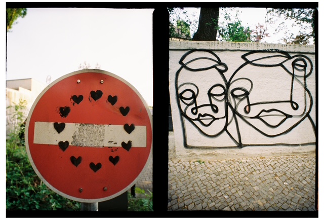 If aiming for a specific diptych, I shoot three pictures: first one subject, then the second, and the first again. That way, I can be sure the combo shows up on the roll and scan, no matter how it’s cut. Not a profound realization, but I like the rhythm of it. I don’t have to keep track of the count, instead I can be free and creative.